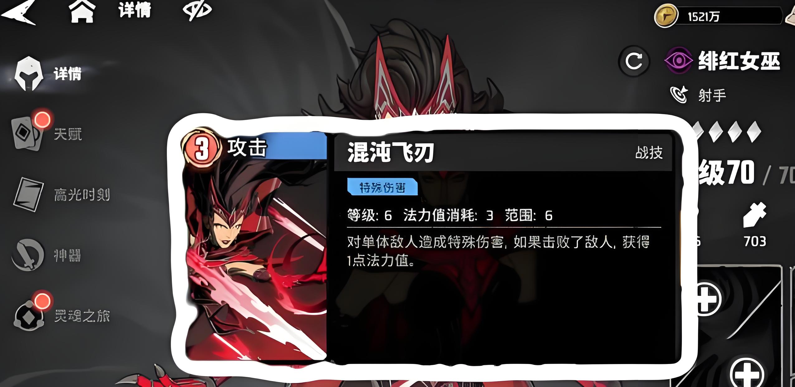 3、二技能专注单体打击,打单一敌人高特殊伤害,击杀目标回法力值,缓解续航压力保技能循环。
