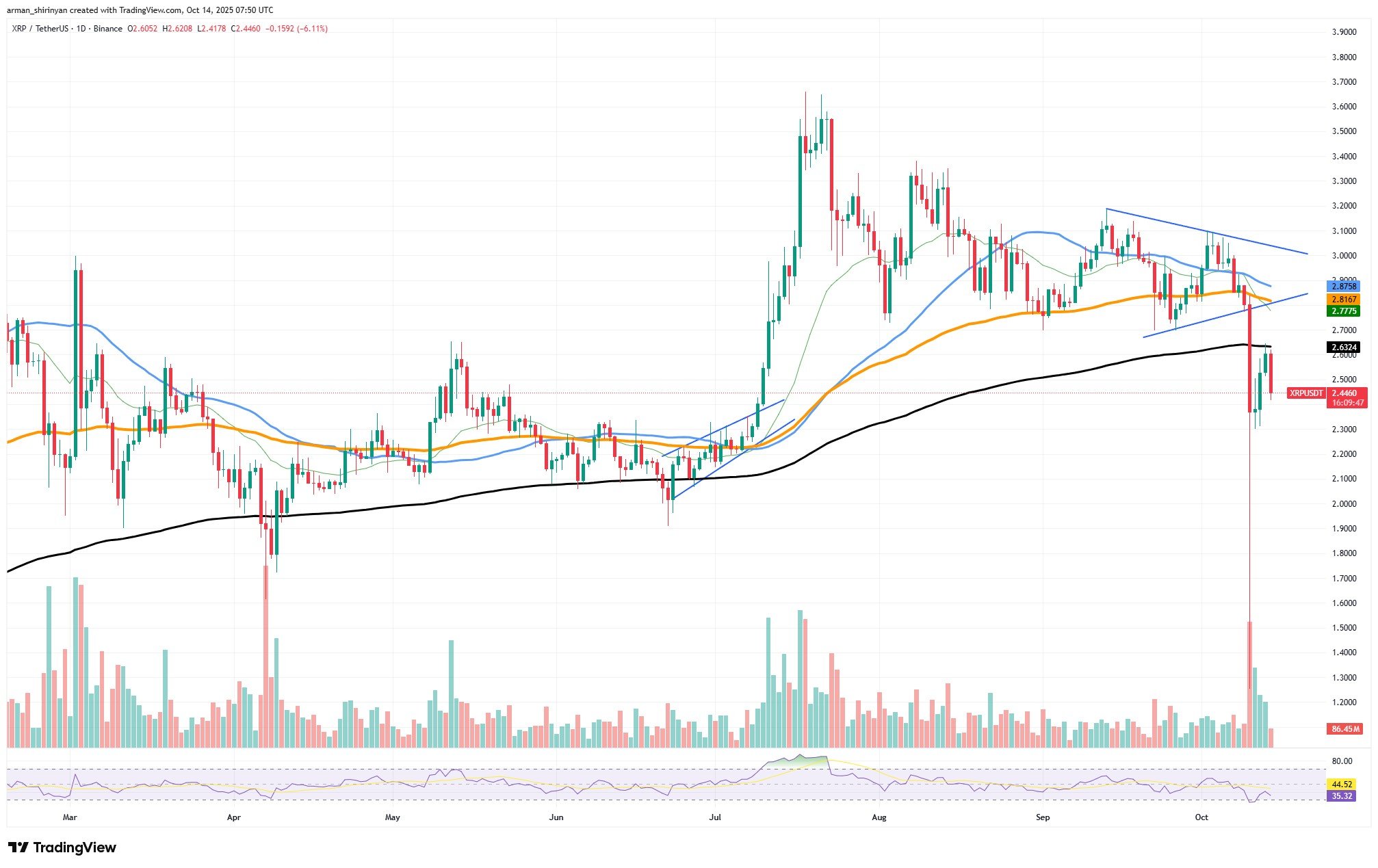 一场戏剧性且毁灭性的逆转终结了XRP近期的反弹尝试,这可能预示着该资产下一阶段的重要走势——而且并非向好方向。在从全市场暴跌中短暂复苏后,XRP在200日均线处遭遇致命拒绝,该均线历来是长期下跌与牛市复苏的分水岭。这次拒绝来得残酷而迅速。