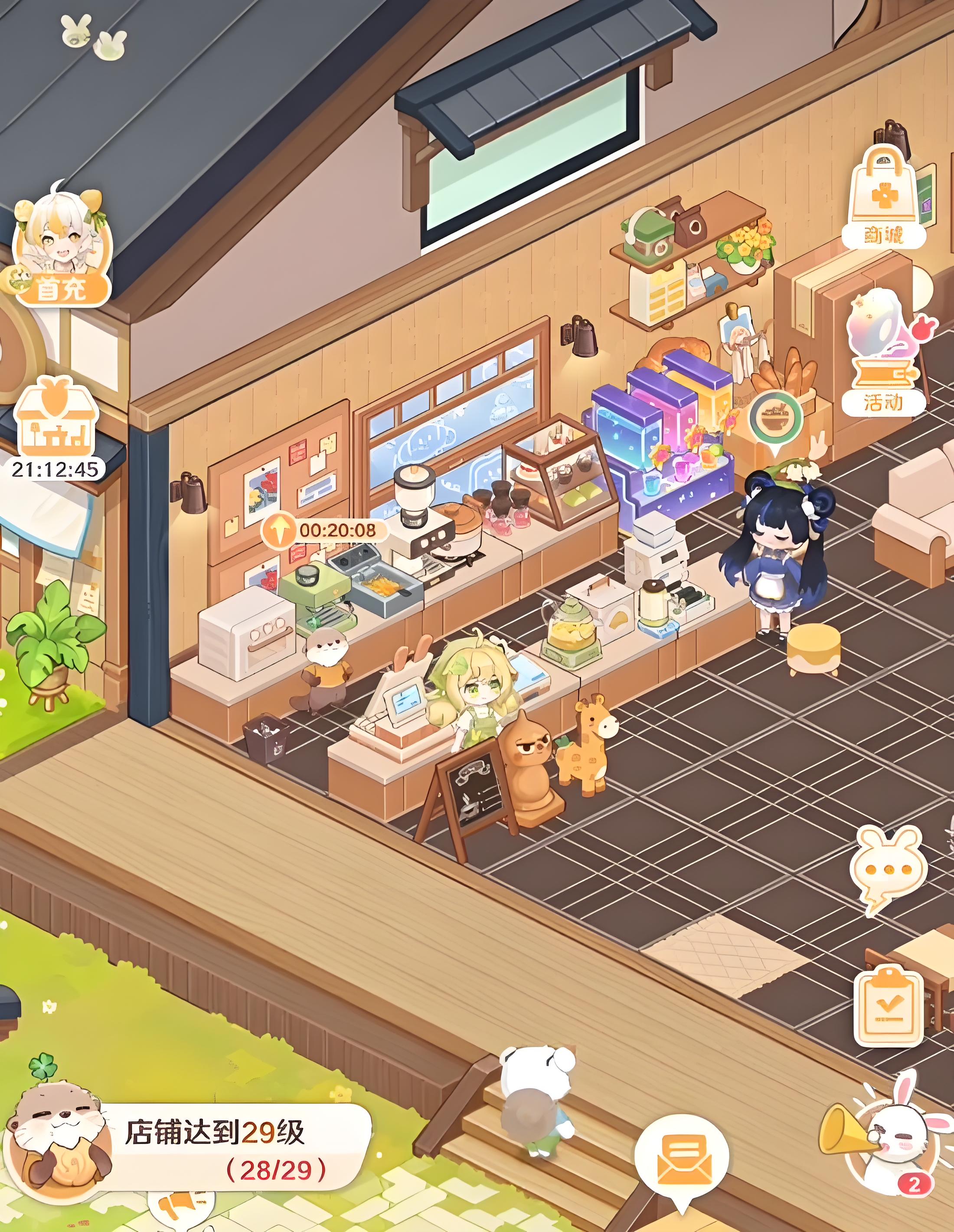 3、店员等级提升靠服务顾客,完成服务就能得经验,服务顾客越多经验越多等级升得越快,等级提高后能力会增强还能解锁或强化技能。