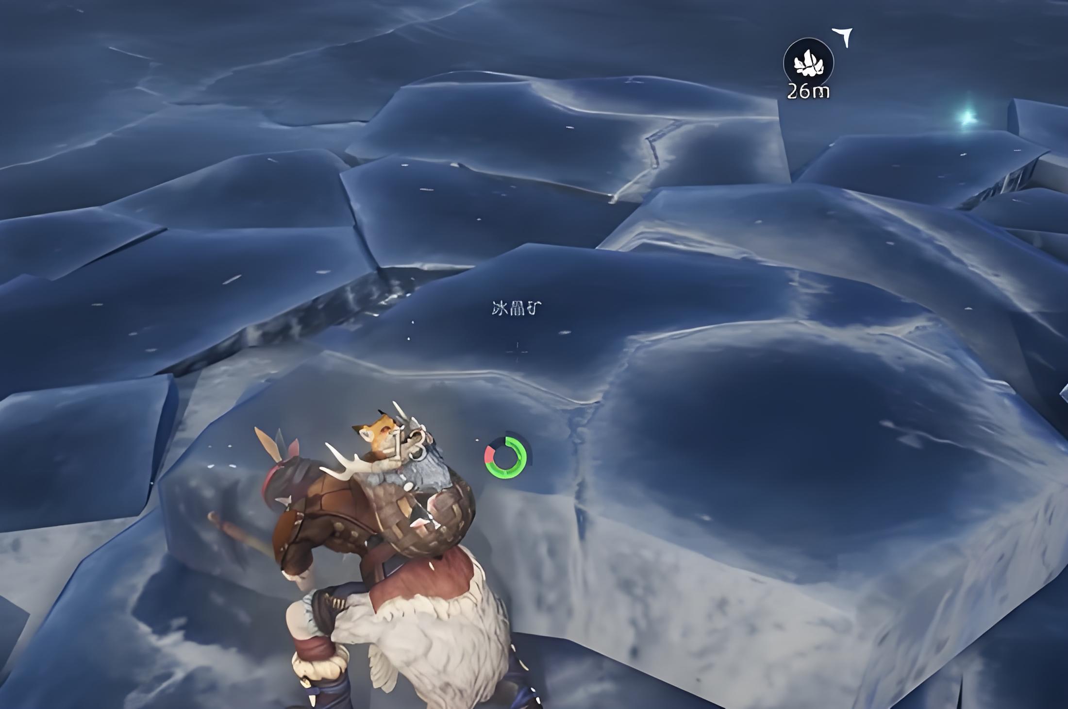 2、挖掘冰晶矿后玩家会掉落冰坑下水域,体温会迅速下降需短时间内爬回岸边,建议挖掘前在附近准备篝火或石制烤盘钓鱼时可随时取暖恢复体温。