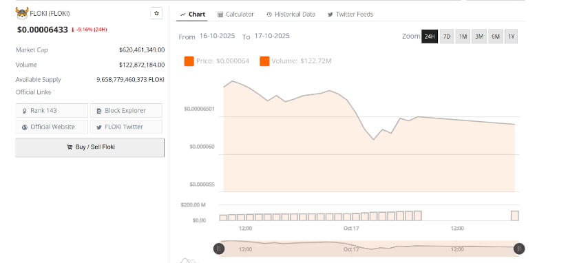 FLOKIUSD 24小时图表 | 来源:BraveNewCoin