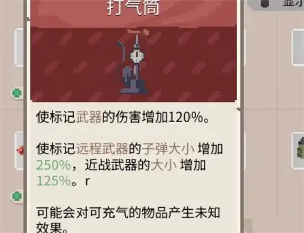 投掷物龟速投弹太鸡肋了,这时候就需要宝石来解围,只需要吃到经验球即可触发!升到最高品质将拥有恐怖的50%触发概率,行走的绞肉机,配合燃烧瓶+打气筒有奇效。