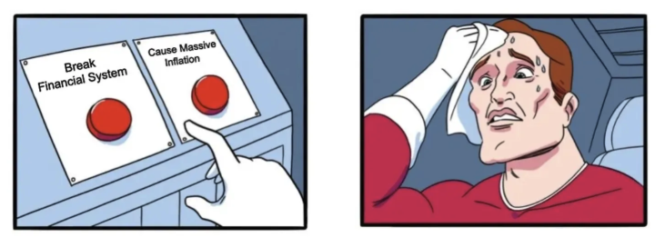 没有第三种选择,简而言之,美联储就像一只被困在仓鼠轮上的老鼠,不得不前进。
