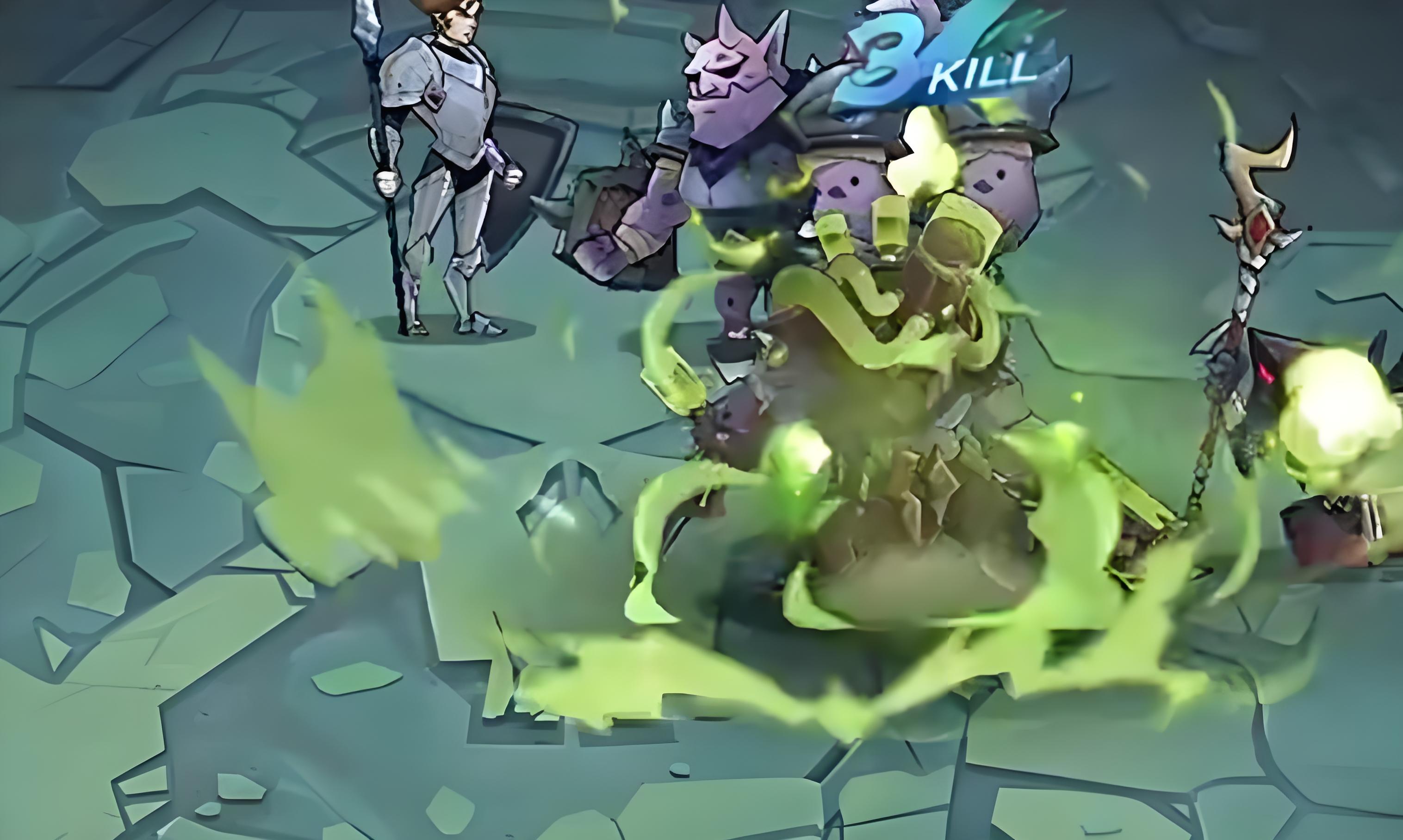 2、致命酸雾是中后期持续输出关键,高血量时释放对周围敌人造成基于最大生命值的伤害,升级后定时引爆酸雾并附加眩晕效果。