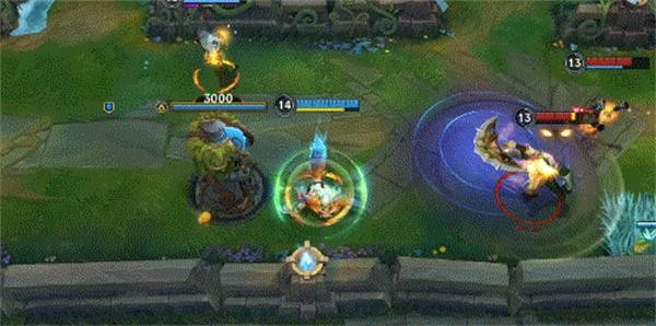 2、解析:小纳尔无伤换血的根基,利用射程优势普攻,用三环的加速效果安全后撤。