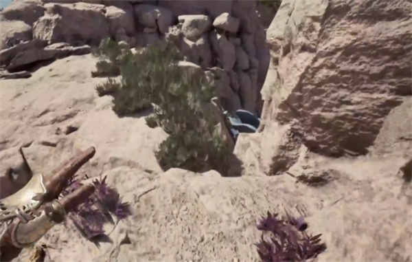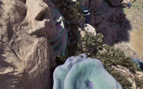 4、注意看缝隙中间有蘑菇,在这里停下。