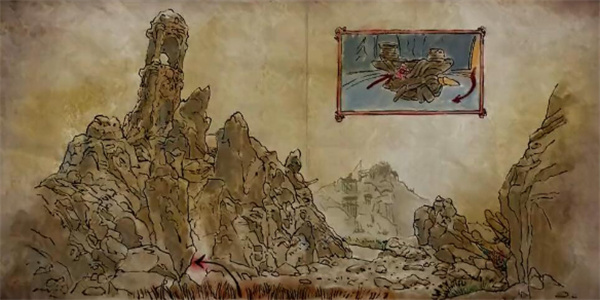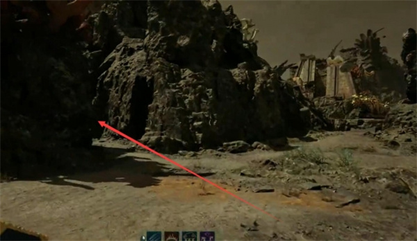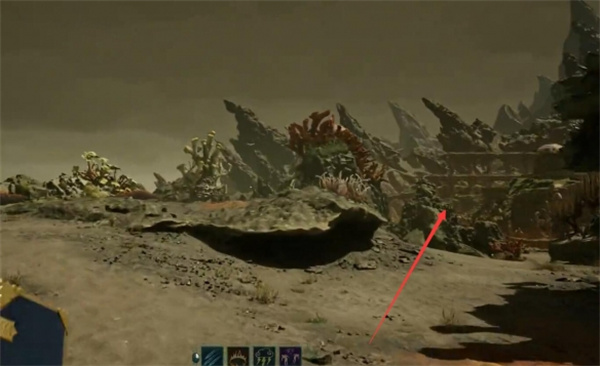 3、爬石头可以看见一个圆顶的建筑,往建筑里走互动桌上的道具开门;