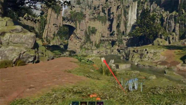 2、沿着左边的路来到湖泊处往前走几步跳到水里面;