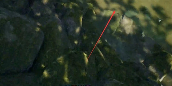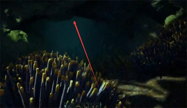 3、进入水底后从图示的石洞下面钻过去找到发紫光的宝箱;