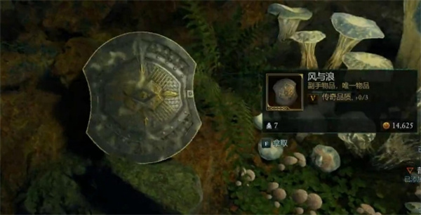 4、在宝箱的左边有个盾牌,直接按【F】拾取即可获得宝藏。