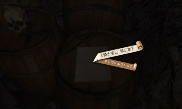 4、在尽头的木桶上获取骑士笔记第三章。