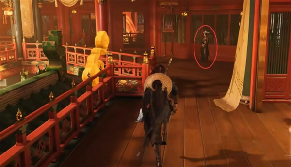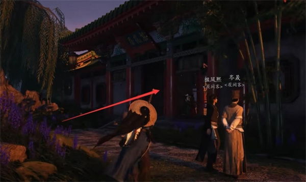 4、传到【艳湖】从后边的长廊传过去右边的房子就是【繁华居】,前往【繁华居】花树下;