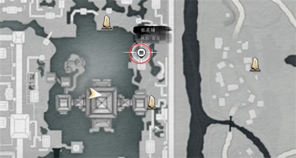 2、然后前往【银花铺】先传到下面的传送点过来后往右边走;