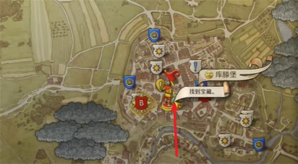 7、来到库滕堡右侧河流中的小岛,找到一个凹陷的箱子,射下边上树上的小鸟,开启宝藏。
