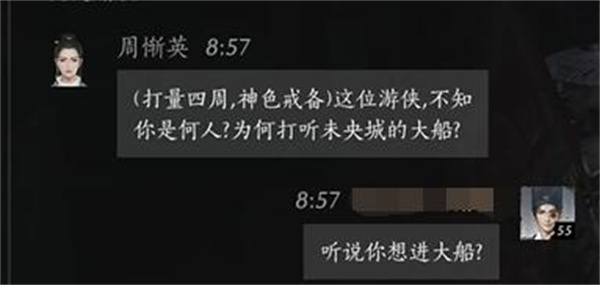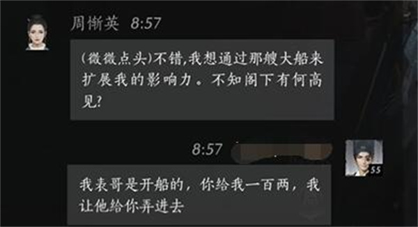 玩家:我表哥是开船的,你给我一百两,我让他给你弄进去。