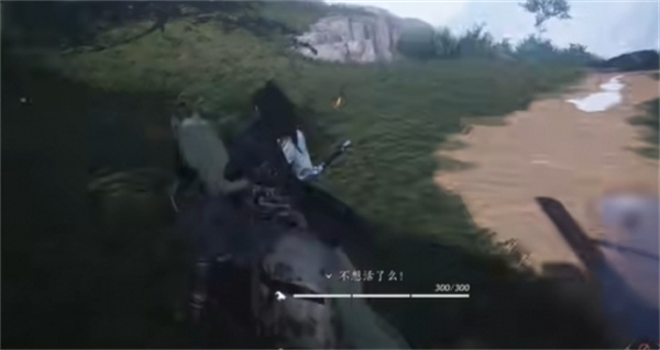2、然后我们沿着路线前进,这个时候会遇到部分NPC,并选择抢下他们的马。