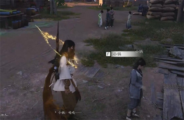 4、往右边的路走,一群小孩子里找到【小锅】,把钱袋给他完成任务。