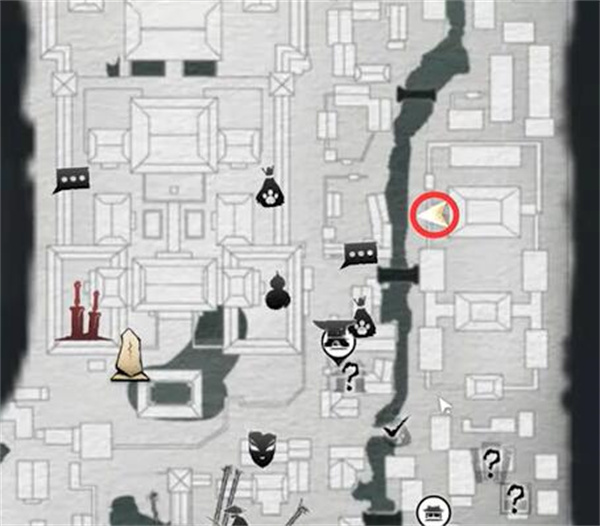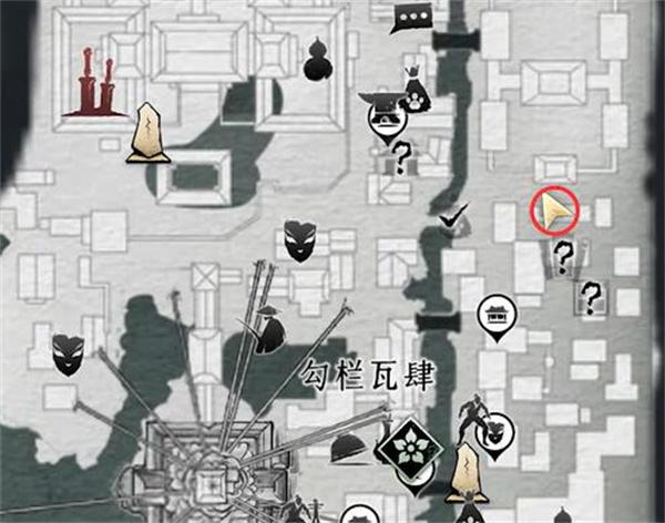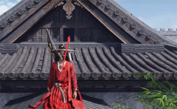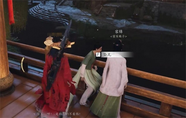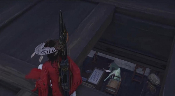3、来到下图位置对话【坠儿】,来到房顶从房顶小门进去偷罗盘;