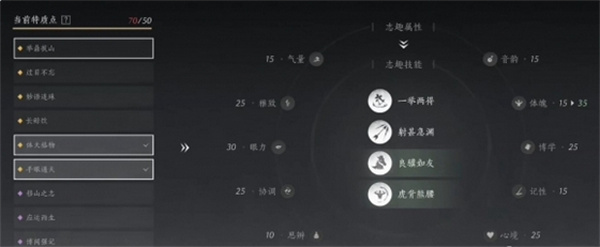 2、消耗特质点可提升志趣技能的等级,提升相关增益效果。