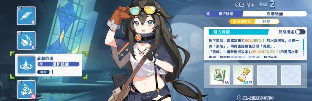 1、核心援护技能浪潮绝涌冷却14秒,释放后造成水系伤害,生成持续6秒的浪域与涌盾,浪域附带范围伤害与印记,涌盾吸收基础攻击相关伤害。