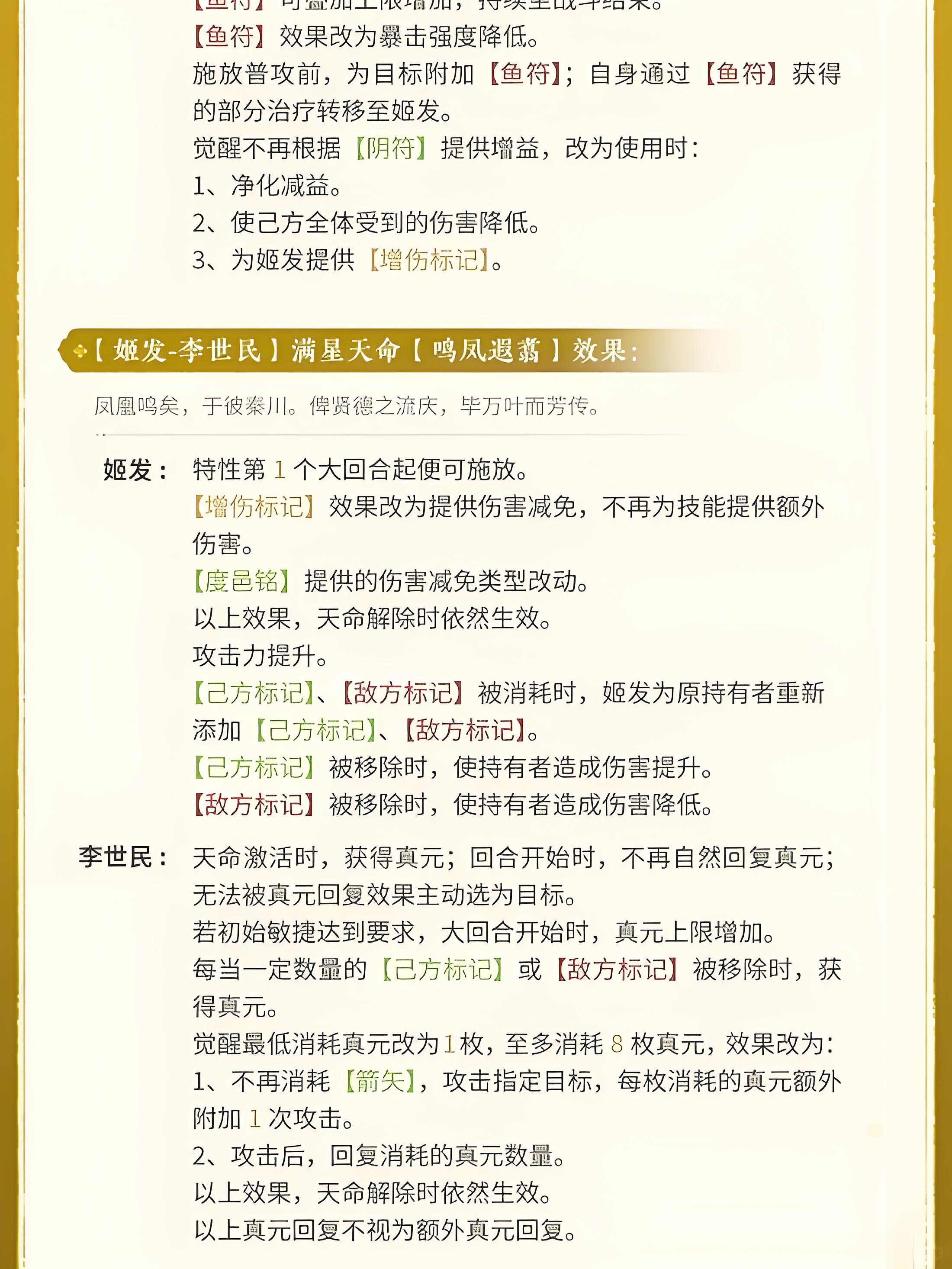 3、度邑铭状态下己方带己方标记单位技能主目标为带敌方标记敌人,或主目标为姬发时消耗双标记,姬发获得一层增伤标记。