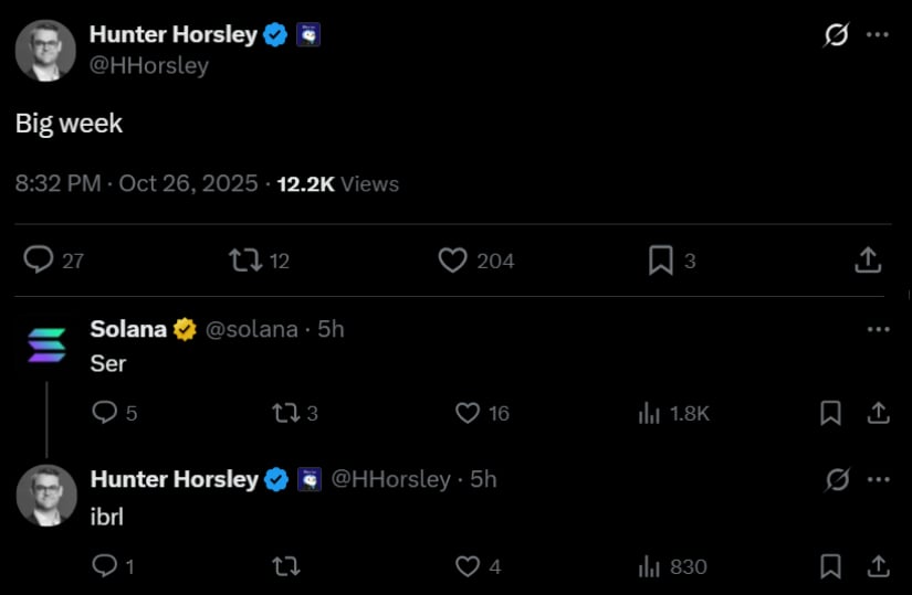 CryptoRus最新披露,Bitwise首席执行官暗示Solana可能迎来"重大周",引发市场对Solana现货ETF即将获批的猜想。此前Solana官方账号对此消息作出回应,显示基金会正积极参与推进。