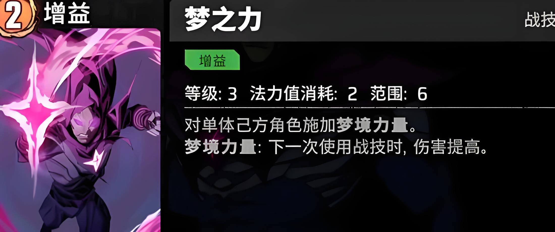 3、梦之力可在释放其他技能后叠加增益提升下一次技能伤害,能多次累积且强化单个友方技能释放频率影响队伍战斗节奏。