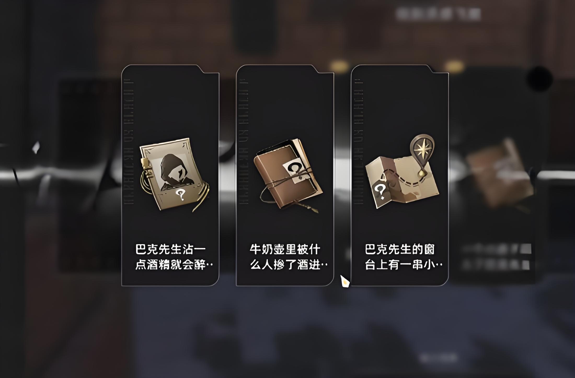 1、接任务后前往巴克先生住所调查,进入思考模式选巴克先生沾一点酒精就会醉倒,再选牛奶壶里被掺入了酒,结合推断有人故意灌醉他。