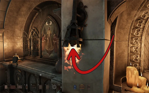 2、将审判之手旁边的火把倒置,即可获得隐藏在火焰中的令牌。
