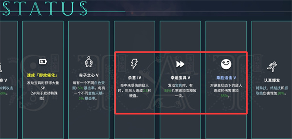 其他天赋拿“杀意”+“幸运宝具”+“乘胜追击”+“认真热身”+“快速装填”+“赤子之心”。