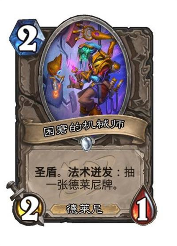 只带了一张困窘的机械师,可以定向检索一张德莱尼,游侠斥候和大主教奈丽上手一张基本就不会缺牌了,而且一二费都有发现牌,加上起手换牌,抽到一张德莱尼的概率其实非常高。