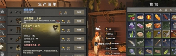 在制作沙漠套装之前我们需要确认是否凑齐了材料,否则套装是无法制作的。