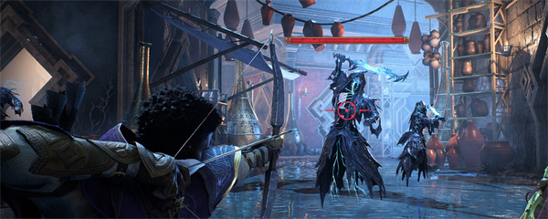 使用塔什的能力(或者如果塔什不在,可以使用鲁克的刀)炸掉瓶子,使梯子掉下来。现在你可以爬上去并抓住一个幽灵球。拿到后,跳回下面,然后再次跑进守望者城堡。不过,不要向前进入库房大厅,而是向左走。