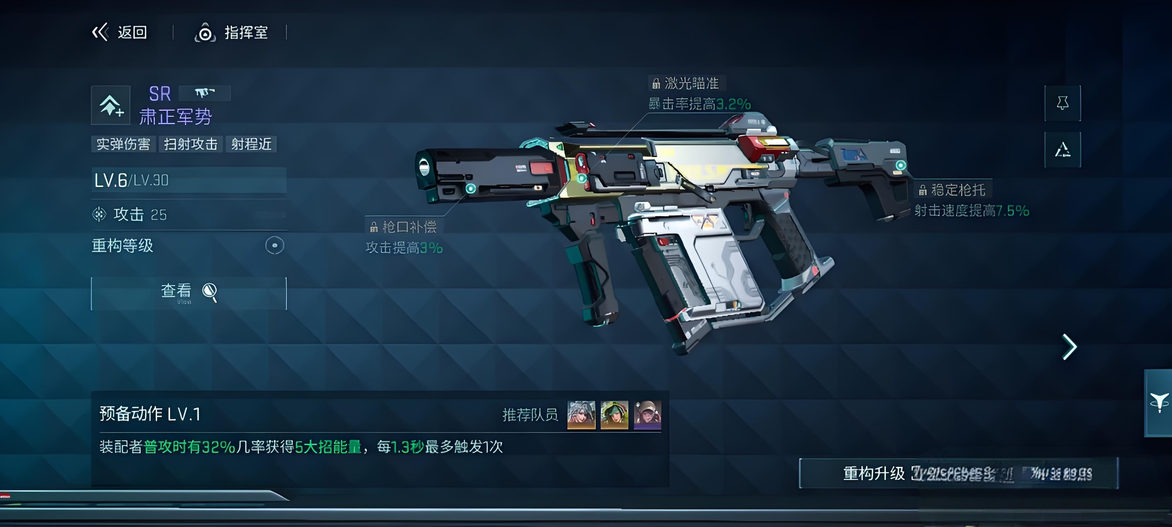 4、武器搭载多种部件配件均提供属性加成,提升配件等级可直接加强战力,如SR品质肃正军势含三个基础配件。