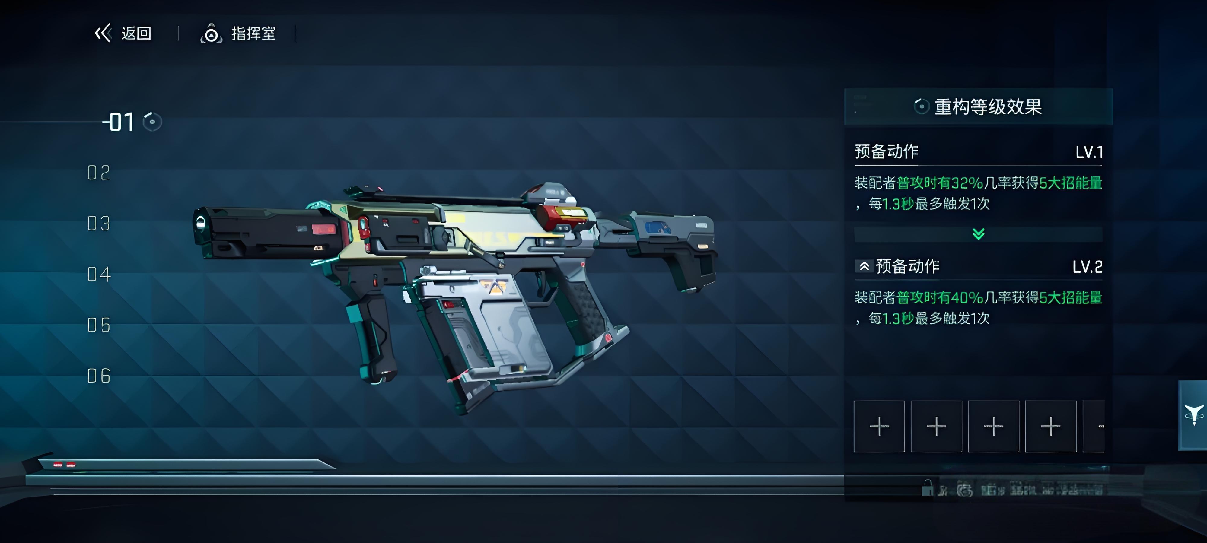 5、强化后增加攻击威力相同武器可重构升级,放入材料提升等级强化特殊加成,闲置武器回收获强化材料。