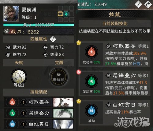 白虹贯日:为追击英雄必带被动技能,可以提升自身的暴击效果,追求极致的输出,前期打叛军或者打名将来访都非常好用。