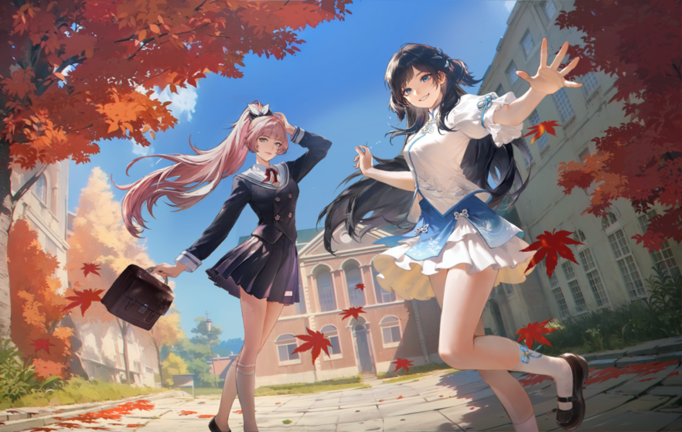 藏在衣角的枫叶,你发现了吗?JK时装上新,秋日序曲即将奏响,来和妖刀姬、蓝梦一起漫步校园。