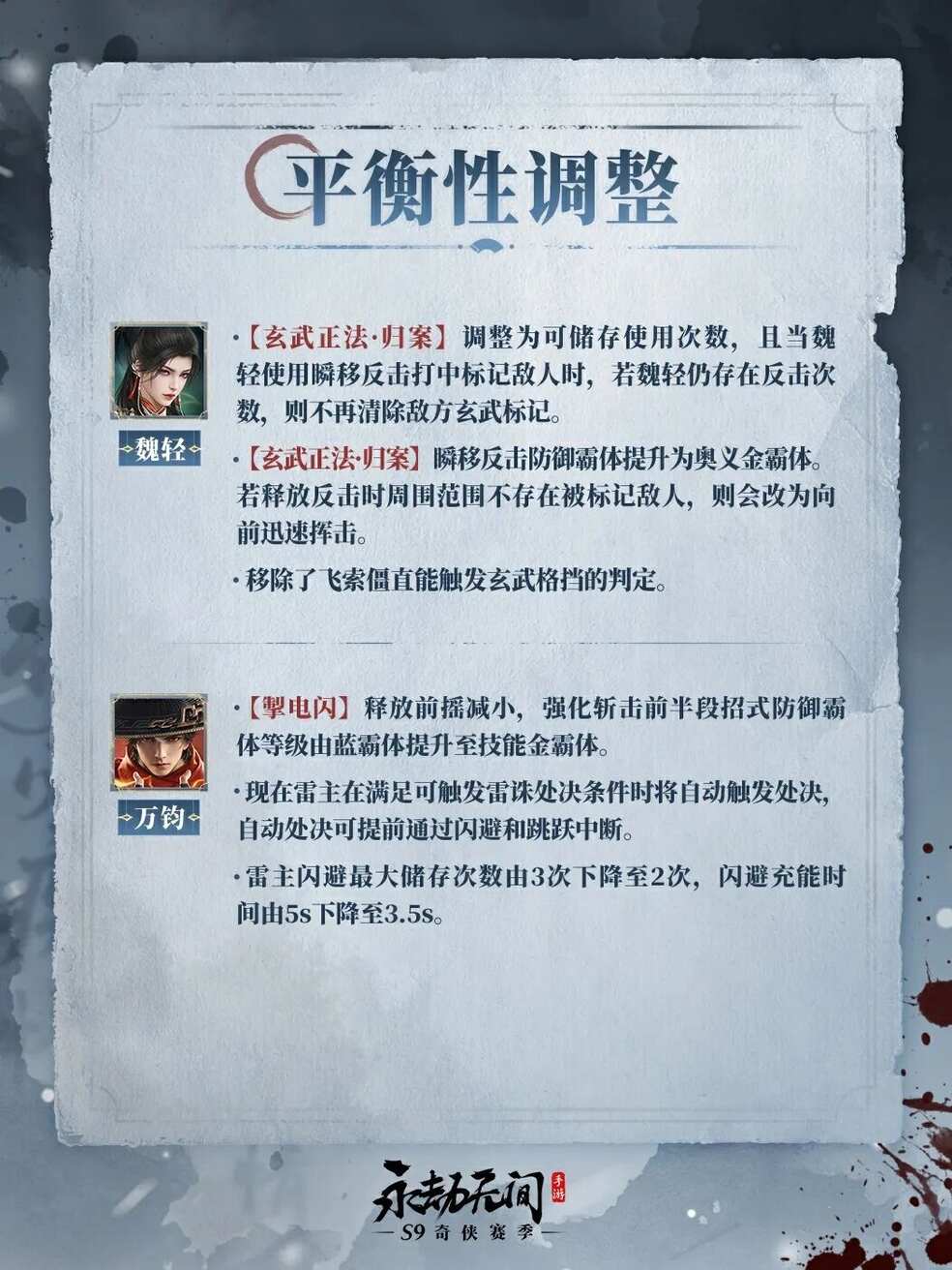 永劫无间手游S9赛季将于11月13日开启,相信还有一部分玩家不知道S9奇侠赛季有什么新内容,别急!下面小编就为你将S9赛季的全部爆料整理到一块,让你一次性了解全部新增内容,轻松开启S9奇侠新赛季。新武器·飞刀、新英雄·李寻欢陆续登场,海量平衡性调整、玩法迭代及性能优化!