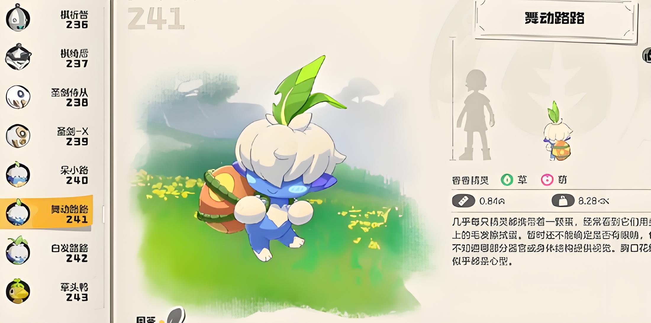 1、进化路径清晰,呆小路32级进化为舞动路路,40级进阶为最终形态白发路路,草属性赋予其对部分机动型对手的克制优势。