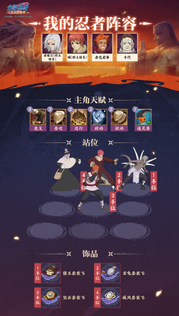 4、选择阵容时需结合自身忍者养成情况,搭配适配增益与合理站位,才能最大化发挥阵容战斗潜力。