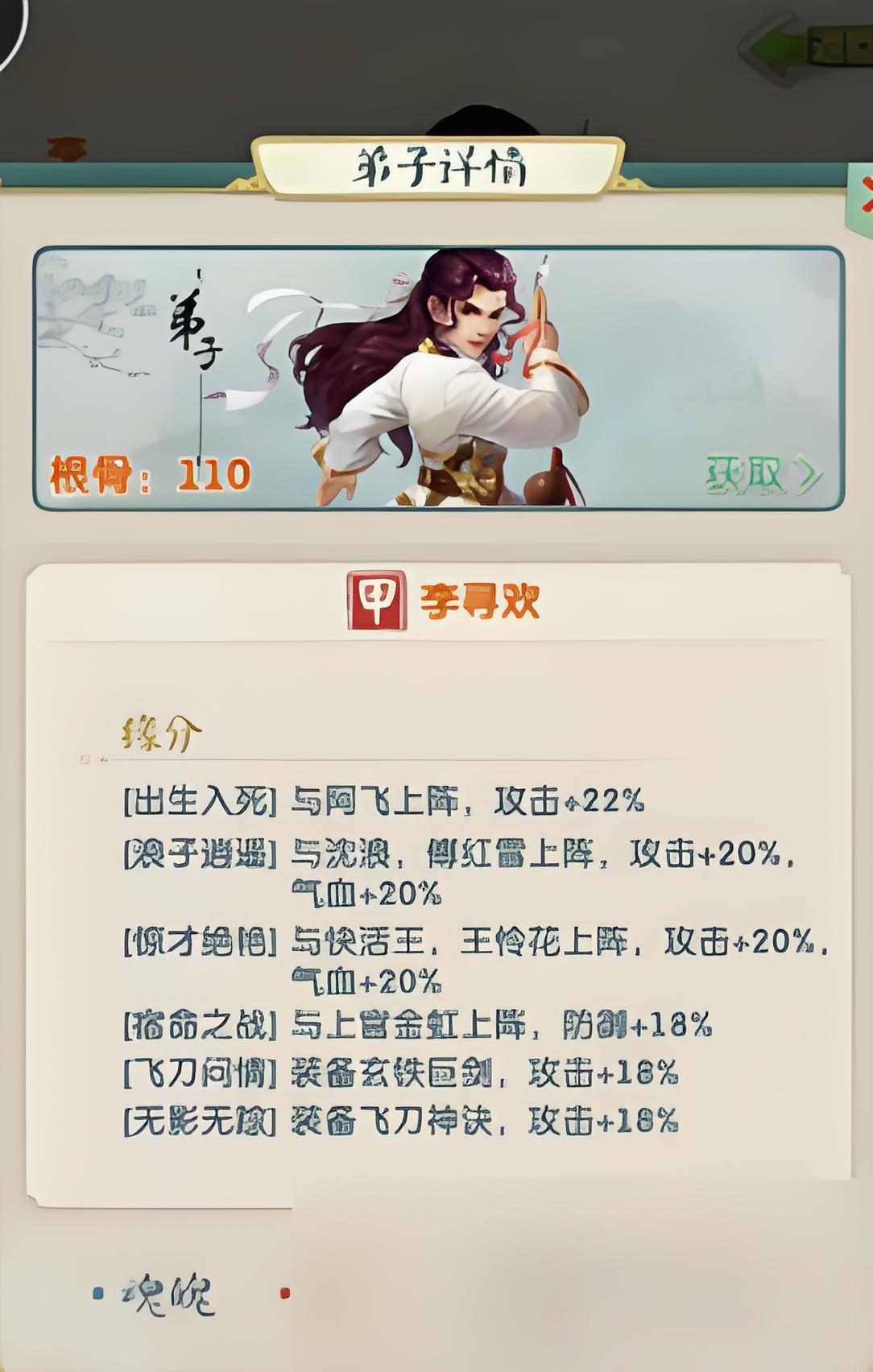 大掌门2李寻欢是人气极高的甲级弟子,核心定位为高爆发单体输出,属性培养方向直接决定其秒杀能力与战场适配性。玩家培养时易在属性优先级资源分配装备心法搭配上陷入困惑,科学规划才能充分发挥其飞刀技能优势。本文将拆解核心属性培养逻辑资源倾斜比例及阵容协同方案,帮助玩家打造强力输出核心。