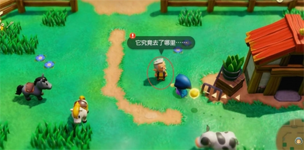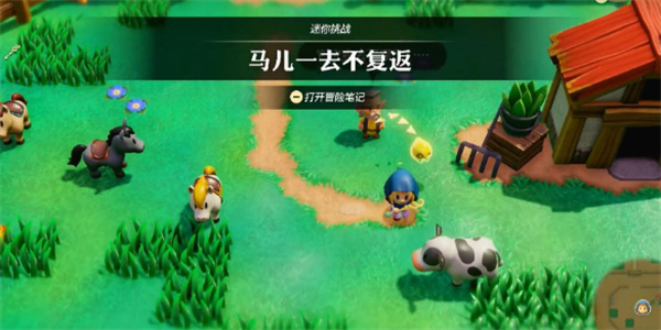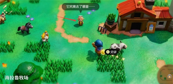 1、前往【海拉鲁牧场】来到图示位置和NPC对话触发迷你挑战【马儿一去不复返】;