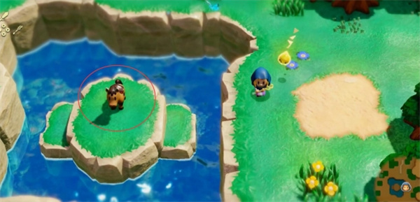 2、然后往左下方走几步,同步圈出来的马把它拉到岸上;