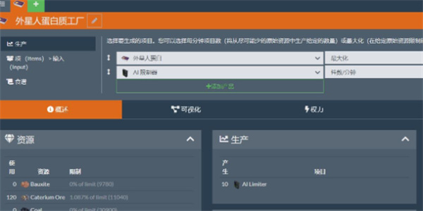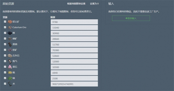1、在这里玩家可以添加自己生产的资源以及生产效率。