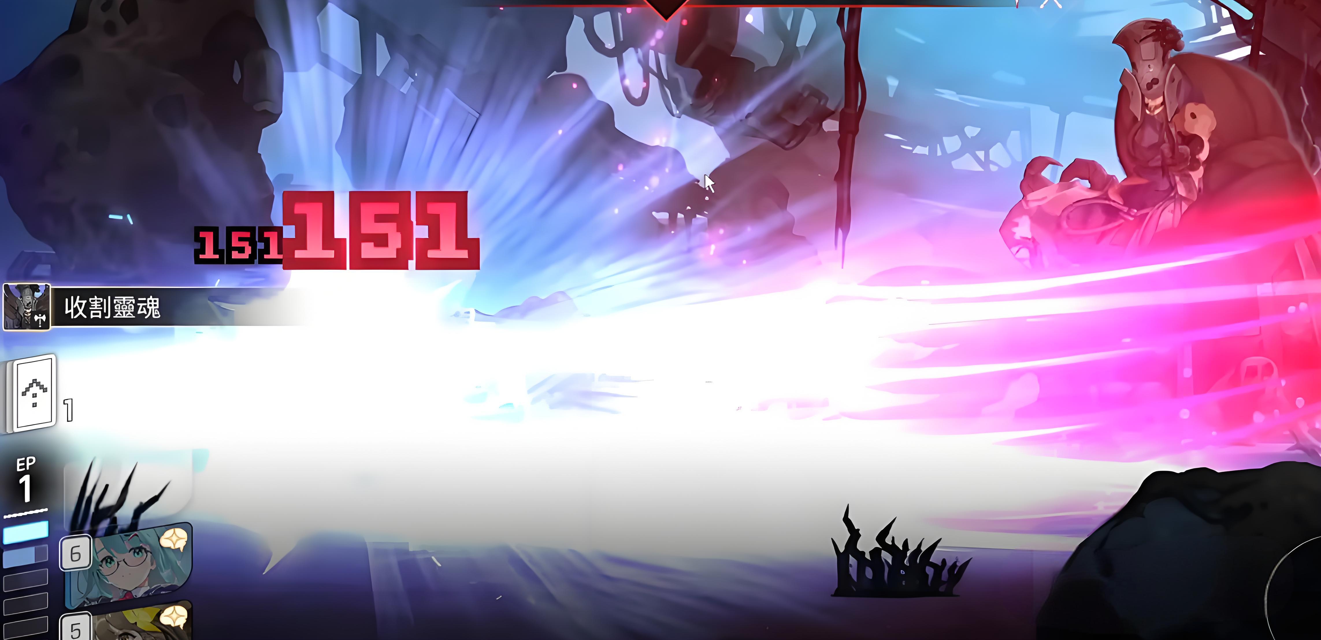 4、两名角色强化满属性后发起总攻,优先打出高倍率单体攻击牌,残血阶段蓝壶攻击变密间隔缩短,配合斩杀牌收割。