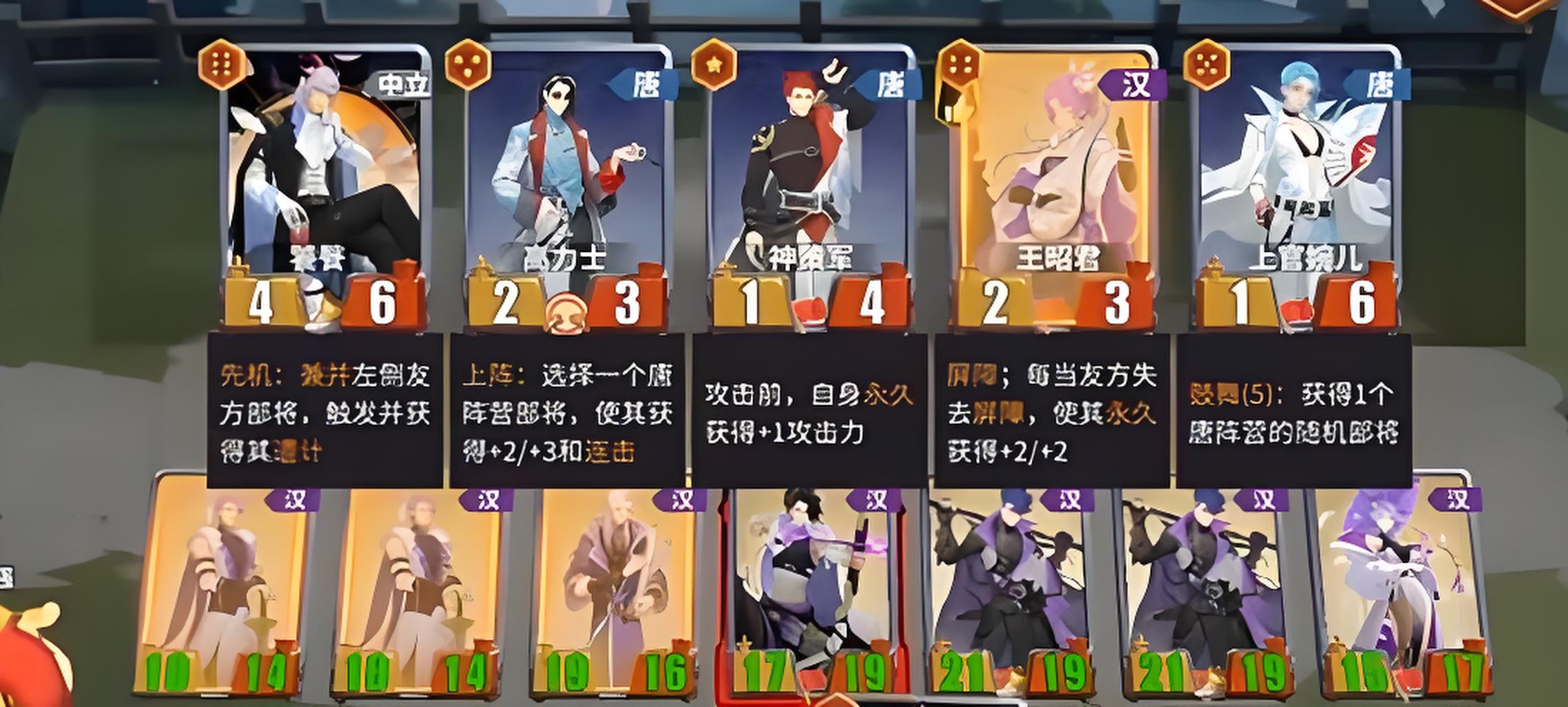 5、对局中需合理管理卡牌资源,把控技能触发和部将阵亡时机,确保突袭频率和鼓舞叠加,最大化阵容爆发潜力。