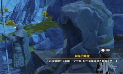 4、最后我们爬到石像的肩膀上把眼睛安装上去就可以了。