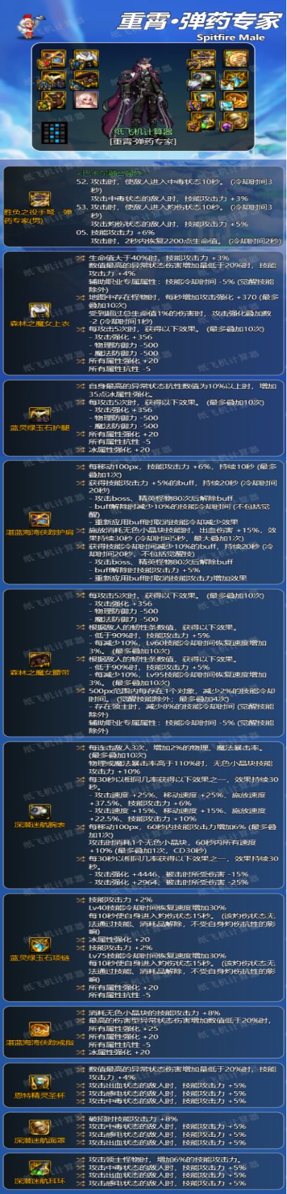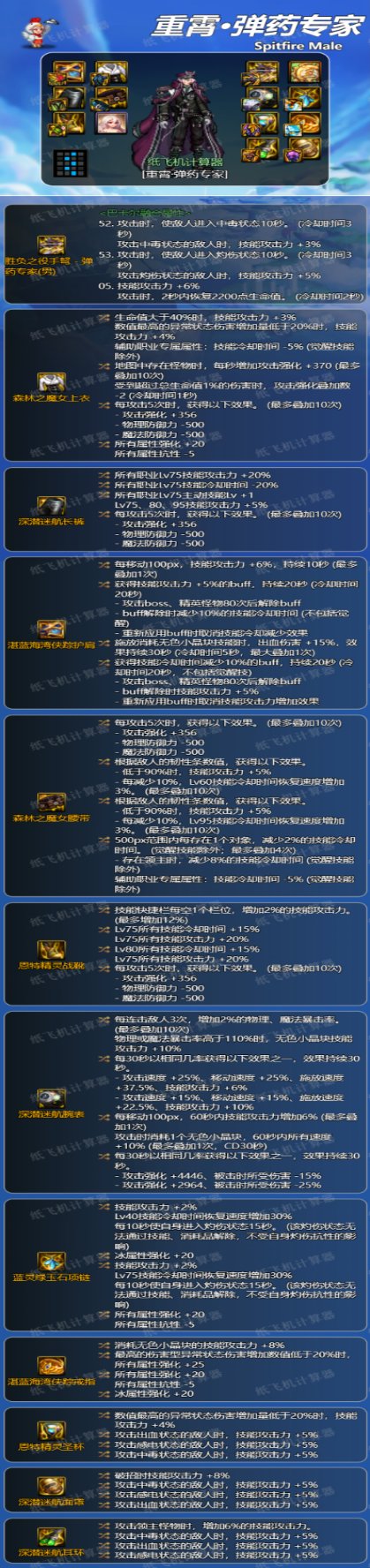 非常通用的一套直伤搭配,主要加成的是无色技能,项链选择40和75级技能CD,用少量伤害亏损换大量40和75CD,很适合CP武器。魔女腰带需要注意90%韧性下,触发双5技功。