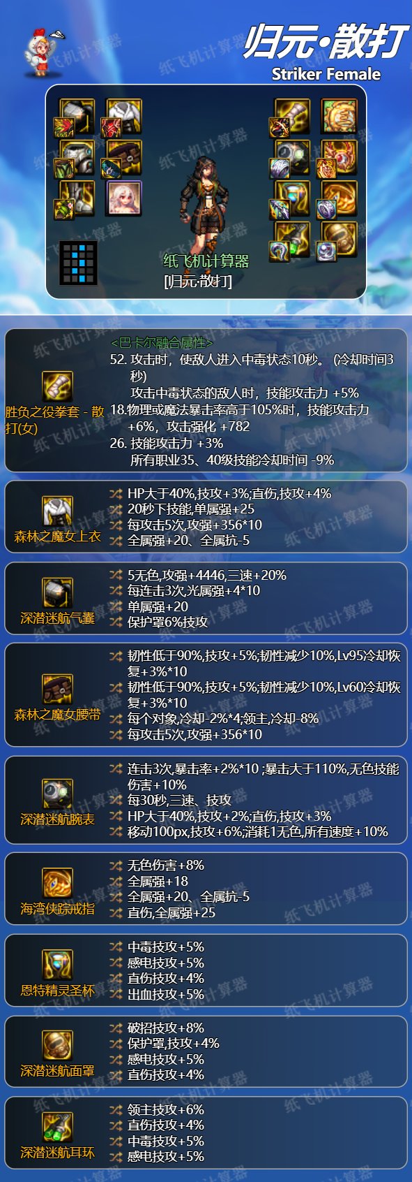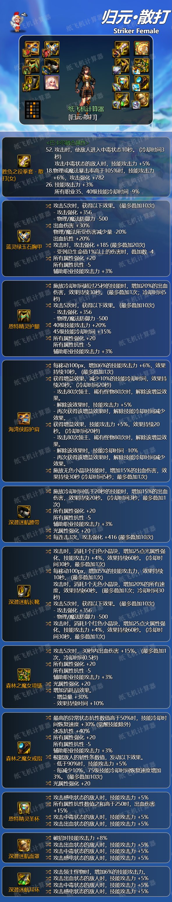 另外需要改一下时装的攻速换成大异常抗性 并且3个玲珑攻速换成3个玲珑大异常抗性方可触发 如果不想这么麻烦也可以用魔女腰带+恩特戒指 cd会比现在慢一点;