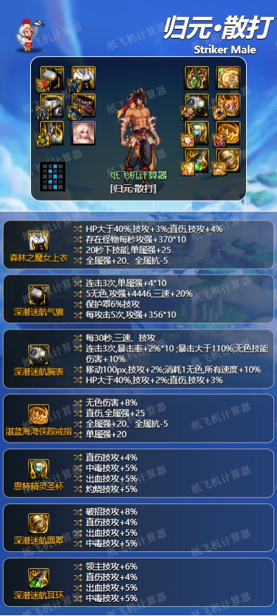 直伤体系上限最高的流派,搭配改版后cp武器可能有特殊玩法,缺点是传说装备成本高,刷图费无色。不习惯手搓头肩可用海贼肩代替,下装可考虑海贼下装(生存力下降),上衣下装如打算特化80可用恩特上衣和深潜裤子代替。